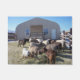 Cabras y ovejas se reúnen frente al granero para disfrutar de su alimento invernal de heno en este tranquilo rancho de Nevada.