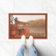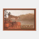 Cougar en las rocas. Un león de montaña escanea intensamente por una posible presa junto con un texto que dice "BIENVENIDA".