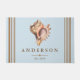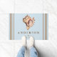 Ilustracion elegante de la cáscara de la concha en el centro. El fondo tiene un color azul suave y un texto personalizado del apellido en marrón. ¡Este doormat es elegante, elegante, y haría una gran impresión en sus huéspedes de la casa pues se dan la bienvenida a su hogar!