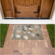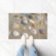 Esta alfombra de la puerta tiene conchas marinas retratadas en ella.