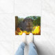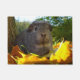 Foto adorable de un conejillo de Indias marrón rodeado por las hojas de otoño.