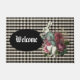 La original Alicia en el Conejo Blanco de la Tierra de las Maravillas, con un ramo de flores sobre el fondo de un arlequín blanco y negro, presenta una decoración casera. El texto de "bienvenida" en óvalo negro puede ser personalizado o dejado tal cual.