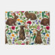 Conejos dibujados a mano y flora de los bosques, hongos y berias de helecho y bichos