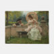 Este diseño presenta un cuadro del artista italiano Federico Andreotti (1847-1930). Muestra a una joven y elegante sentada en un banco de piedra en un parque. Está hablando con su pretendiente masculino, que se está agachando a su lado. Los dos amantes tienen una conversación romántica lejos de los ojos entrometidos de la familia y los amigos. La señora lleva un vestido blanco de moda y sostiene una sombrilla para protegerse del sol. El caballero también está usando un disfraz histórico apropiado a la época. En la banca que hay junto a la joven hay un libro que quizá contiene poesía amorosa y rosas rosas rosas que su admirador puede haber dado. La pareja está rodeada de hermosos árboles verdes. También hay un lago o un río que atraviesa el parque.