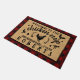 "Bienvenidos al gallinero" texto con 4 siluetas de pollo (1 gallina, 1 gallo, 2 pollitas / pollitos), más una corona de hojas y huevos. Añada el nombre de su familia a esta moda rústica casa de campo con un marco de manteca de búfalo rojo / negro, un centro de burlap y siluetas negras - perfecto para granjeros y amantes del pollo. Este diseño está hecho para que se ajuste mejor al tamaño de los grandes felpudos. PARA PEDIR EL TAMAÑO MÁS PEQUEÑO, visite aquí: https://www.zazzle.com/chicken_coop_hen_red_buffalo_check_plaid_country_doormat-256359292576540449