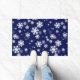 Felpudo Copos de nieve azules y blancos en suelo azul oscu