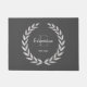 Alfombra de entrada gris oscuro con corona rústica moderna, nombre de familia, monograma y año de establecimiento.