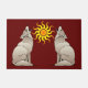 Un gráfico de coyotes aullantes bajo un sol suroeste en los colores y estilo del arte suroeste.