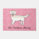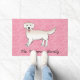 Felpudo Cream Golden Retriever On Pink Hearts With Text