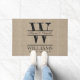 Haga su propio monograma sencillo, elegante y único con este diseño de logotipo personalizado con tipografía retro sobre un fondo de imagen burlap marrón claro y natural. Reemplace el texto de ejemplo por el inicial de su familia, nombres, fecha de boda u otro texto para un regalo personalizado. Hace un regalo maravilloso para el Boda, Aniversario, el calentamiento de la casa o la anfitriona, cumpleaños, retiro y muchas otras ocasiones especiales. (Nota importante: Este producto no está hecho de tela burlap real. Una imagen/foto de la burlap natural se utiliza como fondo de diseño e impreso en una superficie plana.)