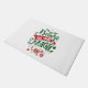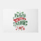 Un felpudo con un ilustracion fresco. El texto dice Creer en la magia con letras elegantes. Decorada con bolas de navidad.