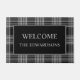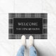 Felpudo Cuadro de plaid búfalo negro blanco con nombre de