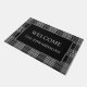 Patrón moderno de plaid de búfalo en negro y blanco, marco negro, texto de bienvenida con nombre de familia. Puedes cambiar el texto fácilmente.