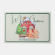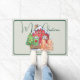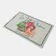 Este doormat de vacaciones de Navidades personalizados presenta un lindo ilustracion de color acuático de gente de pan de jengibre. Un pequeño hombre de pan de jengibre está parado frente a su casa de pan de jengibre. A la izquierda hay un árbol decorado con bonito. El fondo es un verde sabio suave con texto marrón.