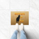 Doormat marrón y naranja de diseño de silueta de gato y arañazos de gato.