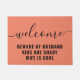 ¡Bienvenidos invitados con una risita usando este humorístico felpudo! El divertido mensaje "Cuidado con el marido, los niños son sospechosos, la esposa es Guay" añade un toque de personalidad y diversión a tu puerta. Este duradero doormat de coco es perfecto para uso interior o exterior, añadiendo un poco de risa a la entrada de tu casa.