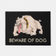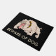 Avisar a sus invitados con un doormat "Cuidado con el perro". Mostrado aquí con un fondo negro, puede cambiar el color de fondo al color de su elección seleccionando el botón "personalizar" y seleccionando otro color de fondo. También puede editar el texto mostrado en la plantilla de diseño si lo desea.
