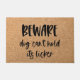 Un gracioso felpudo mostrando el texto "Cuidado con el perro no puede aguantar su lamedor". Un regalo divertido para el cambio de hogar o para su propia casa.