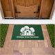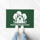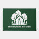 This forest green real estate company door mat is perfectly customized for a realtor who specialized in houses near the wilderness or woodlands. The white silhouette of trees behind a log cabin home and personalized with your agent and realty business name for marketing in the backwoods.