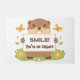 Add charm and personality to your entryway with this adorable groundhog “Smile! You’re on Camera” doormat. Featuring a friendly cartoon groundhog holding a cheerful sign surrounded by flowers and butterflies, this welcoming design adds a playful touch to your porch while gently reminding visitors they’re on camera.