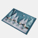 Christmas holiday door mat featuring five elves in the snow.