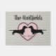 Tapón de puerta temática de Dachshund hecho en un patrón de chevron caqui y blanco, con adorables gráficos de dos siluetas dachshund negras contra un gran corazón rosado. Personalice el texto negro para que se ajuste a sus necesidades.