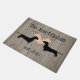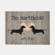 Cubierta de puerta temática de Dachshund con un estilo rústico de tablero de madera, con bonitos gráficos de dos siluetas dachshund negras contra el corazón de un punto de polka rural. Personalice el texto negro para que se ajuste a sus necesidades.