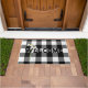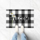 Felpudo Daisy Bouquet Welcome On Buffalo Plaid
