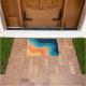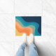Olas de estilo retro ilustracion geométrico con rayas amarillas, naranjas, azules, azul marino y turquesa