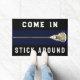 Gracioso doormat lacrosse para jugadores laxos, entrenadores y aficionados a los deportes de equipo, con un diseño de palo lacrosse y línea divertida.