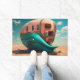 A desert monster house in the shape of a house, in the style of surreal seascapes, photorealistic renderings, light aquamarine and beige, playful character designs