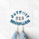 El diseño tipográfico presenta "Michigan" y "Detroit" en texto curvo con el prefijo de código de área 313 para el área de Detroit, en fuentes de aspecto grunge/afligido.