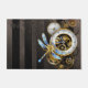 Diales antiguos de oro y bronce, decorados con libélula mecánica sobre fondo marrón, rayado. Steampunk.