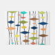 Este diseño de arte inspirado en la era moderna de mediados de siglo tiene diamantes en muchos tamaños y colores. Captura la estética modernista vintage de los años 50.