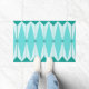 Este los diamantes y la estera de puerta geométricos de Starbursts tiene todo el encanto kitschy algo que es kitschy y encantador. El vintage inspiró características del diseño una MOD, fondo del azul de pavo real con los hexágonos azules claros, alargados, acodados con los diamantes de la turquesa, y los starbursts del azul de pavo real. ¡Es un caleidoscopio de la calidad retra! Este los parecer del diseño del estilo de Palm Spring de los años 50 y de los años 60 él estarían igualmente en casa en una muestra moderna del motel de los mediados de siglo o en la casa de su familia clásica preferida de la televisión.
