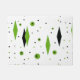 Este los diamantes y la estera de puerta verdes retros adaptables de Starbursts es una nueva toma en un estilo del vintage. Ofrece starbursts kitschy, negros en lunares verdes, formas del diamante geométrico, verde y negro del cerco. Modifique el color de fondo para requisitos particulares en este producto moderno de los mediados de siglo si usted está sintiendo atrevido, o déjele el blanco si está sometido es más su estilo. Usted está seguro de disfrutar de nuestro homenaje a los años 50. Compre esto hoy y sea el gato más fresco en su bloque.