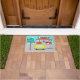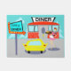 Sirva algo especial con este Diner Door Mat de los años 50. El diseño de los dibujos personalizados incluye un edificio de ladrillo rojo con ventanas azules, puertas dobles grises y un cartel blanco que dice "Diner" colgado en el techo. En el estacionamiento, hay una segunda señal en un poste. El cartel tiene un fondo turquesa y una flecha roja que apunta a "Don's Diner". El cartel ha hecho su trabajo porque hay un auto amarillo brillante con las aletas aparcadas al lado. A pesar de que no podemos verlos, los pasajeros del auto deben estar golpeándose los labios. Un monótono y joven carhop está patinando patinaje sobre ruedas camino al auto. Su pelo de morena está en una cola de poniente hinchable. Lleva un uniforme corto y rosado con guarnecido negro y delantal blanco. Equilibrado por un lado, el carrito lleva una bandeja negra con una hamburguesa gigante y una refrescante y anticuada botella de refresco. El fondo de la sala está verde azulado de nubes azul claro y de siluetas de cedros.