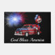 Dios Bendiga a los Estados Unidos los fuegos artificiales rojos, blancos y azules, con un camión retro vintage y flores patrióticas desplegadas en una alfombra de puerta de alta calidad para dar la bienvenida a sus invitados y asistentes fiestas el Día de la Independencia. Personalizado diseñado por Harper Jo Studios. Todos Los Derechos Reservados.
