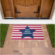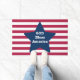 Doormat Door Mat para una entrada decorativa en la puerta de entrada para el hogar o decoración de mobiliario de oficina accesorio impreso con letras de color rojo y azul de Dios Bendiga América y diseño de arte de rayas de TheFabricSeal en Zazzle.com #ZazzleMade TheFabricSeal ©️ original. Tiras horizontales de alfileres rojos y blancos con una gran estrella azul y la frase con letras blancas en el interior. Perfecto para mezclar y emparejar la bandera de franjas y estrellas patrióticas americanas, orgullo nacional y cuarto lugar. Celebración de julio del nacimiento de nuestro hermoso país con diseños temáticos y productos juntos. Ideal para complementar la moda informal, decoración interior, celebraciones, entretenimiento, deportes, vacaciones y más. Hogar, dulce hogar... Ayuda a crear el ambiente perfecto para tu casa, incluso antes de atravesar la puerta, con un felpudo personalizado. Este felpudo es ideal, ya que cuenta con una base de goma que no se agrieta ni se dobla, es resistente al desteñido y al moho y se puede limpiar fácilmente con una manguera.