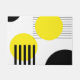 Ilustracion de diseño abstracto con formas geométricas (círculos y rayas) en tonos amarillos y negros sobre fondo blanco.