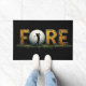 Materia de baño de golf. Esta alfombra de baño presenta un diseño humorístico y elegante, perfecto para los amantes del golf. La palabra "FORE" aparece de forma prominente en letras de oro grandes y texturadas, con una silueta de un golfista en acción que sustituye a la letra "O". Una pelota de golf y un putting green con un agujero añaden al tema lúdico. Ideal para los amantes de los deportes, esta alfombra de baño es un gran regalo para los golfistas, ya sea por un cumpleaños, el Día del Padre o los Navidades. El diseño elegante y divertido es perfecto para añadir un toque de humor y personalidad a cualquier cuarto de baño. Ideal para él o ella, esta alfombra de baño es imprescindible para cualquiera que ame el golf.