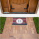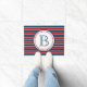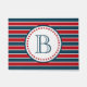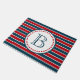 Diseño de temática náutica con decoración monográfica en forma redondeada con estrellas de fondo rayado azul, rojo y blanco