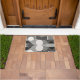 Felpudo Diseño geométrico gris y blanco con líneas de círc