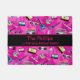 Este porche, agradable y moderno, presenta un divertido estilo de los años 80. Con un fondo rosa con instrumentos musicales coloridos, palmeras, gafas de sol, etc. Hay una caja rosa y amarilla en el medio que indica el nombre de tu familia "...una familia de moda y de moda". ¡Personaliza el tuyo hoy!
