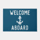 Bienvenidos A bordo de este moderno diseño de diseño estilo tipográfico con imágenes de anclaje sólido en bote situado sobre una sólida sombra azul acuático. Colóquelo en la entrada de su desliz para añadir una declaración única y agradable.