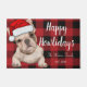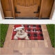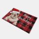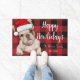 Funny lindo bulldog francés rojo plaid Happy howlidays doormat.