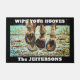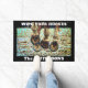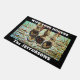 Un caballo corriendo arroja algo de suciedad en esta divertida alfombra que dice "Limpia tus cascos".