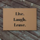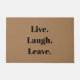 Finalmente, un dicho inspirador para los introvertidos entre nosotros. "Viva. Ríe. Se va", proclama este humorístico felpudo, que es para introvertidos, los antisociales y los socialmente incómodos, que reciben a los invitados con un poco de reticencia y tal vez incluso algo de ansiedad. Tipografía negra sencilla y moderna sobre un fondo clásico de color café-tostado. Inesperado, peculiar y un poco sarcástico, este divertido felpudo es perfecto para los que aprecian el humor negro y seco y no temen compartirlo con sus visitantes (a quienes esperan irse pronto).