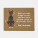 Bienvenido al tapete de puerta Doberman con ilustraciones de tapete de puerta de perro Doberman. Personalizable Doberman perro doormat. En esta alfombra de la puerta de perro de Doberman, puede incluir su apellido y los nombres de su perro Doberman. Con esta alfombra de la puerta del perro también se puede cambiar el color de la estera de la puerta del perro Doberman. El perro Doberman es un miembro de la familia. Amamos a los perros Doberman, ¿y tú? ¿Necesitas un diseño de perro diferente en tu alfombra de la puerta de perro? Contáctenos y compartiremos una nueva estera para la puerta del perro en zazzle. Podemos crear toda la alfombra de la puerta del perro que necesites