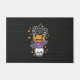 Doormat con un lindo diseño de halloween de cráneo, murciélago, calabaza y araña.